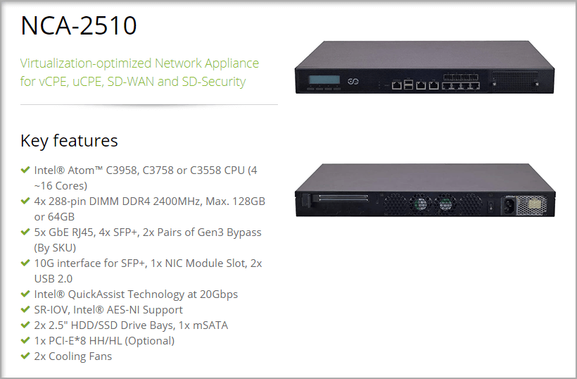 An example of an uCPE capable of supporting multiple uCPEs is Lanner’s NCA-2510. This equipment can be deployed on the customer’s premises and receive network services on-demand. It can also be used in branch offices in SD-WAN deployments.